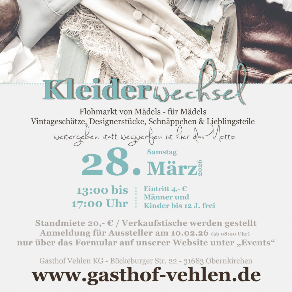 Hier erwartet dich das etwas andere Flohmarkterlebnis – von Mädels – für Mädels. Neben deinen Kleidungsstücken darfst du natürlich auch Taschen, Accessoires, Schuhe, Gürtel etc. zum Verkauf mitbringen.