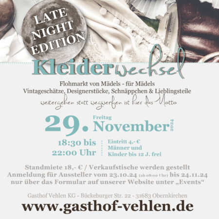 Ihr macht uns wieder einmal sprachlos … Alle Verkaufstische sind bereits vergeben. Wer auf die Warteliste möchte, darf sich gerne bei uns unter event@gasthof-vehlen.de melden.