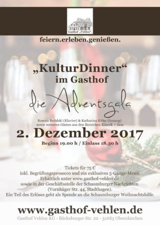 Tickets sind ab sofort für 75 € (inkl. Begrüßungsprosecco + 5-Gängemenü; Getränke exklusive) erhältlich hier sowie in der Geschäftsstelle der Schaumburger Nachrichten (Vornhäger Str. 44, Stadthagen)