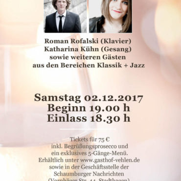 Neben den beiden bekannten Schaumburger Künstlern Roman Rofalski (Klavier) und Katharina Kühn (Sopran), konnten wir den Hamburger Tenor Daniel Philipp Witte, den Jazzsaxophonisten Jonathan Keul und den Kinderchor „Sunny Kids“ aus Seggebruch für uns gewinnen.