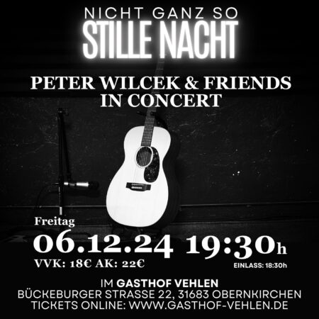 Erleben Sie am 06. Dezember einen stimmungsvollen Nikolausabend im Gasthof Vehlen. Unter dem Motto „Eine nicht ganz so stille Nacht“ laden Peter Wilcek & friends ein. Mit dabei sind: